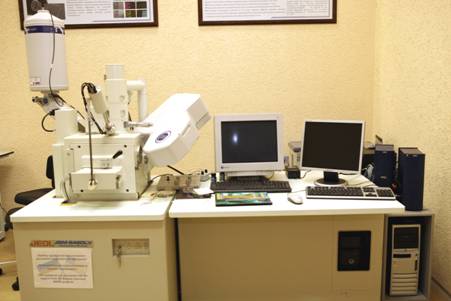 Растровый электронный микроскоп JSM-6460LV фирмы Jeol с EDS-, WDS- и Crystal- приставками фирмы «Oxford» - минералогия, геология, палеонтология, металлургия, разработка новых материалов.