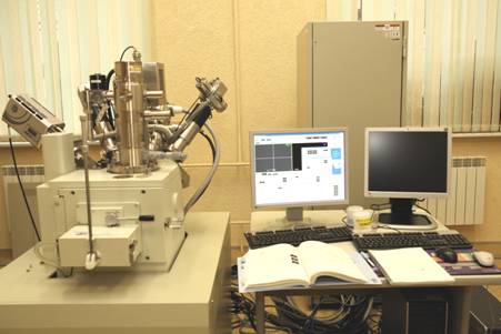 Двулучевой микроскоп JIB-4500, включающий РЭМ с LaB6-катодом и Ga+-ионную пушку.